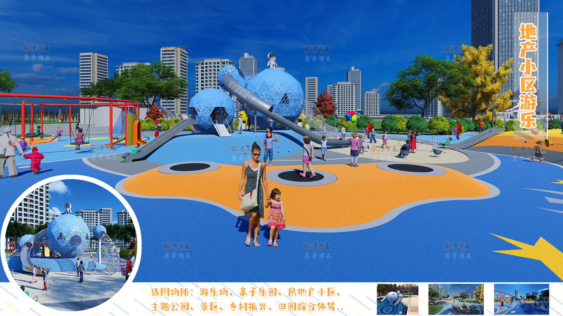 叢林之間鮮艷的色彩并未顯得過于跳脫,而是體現出非常細膩的質感,整個場地給人的感覺就像是動畫片里的場景一般,讓人忍不住置身其中開啟互動游樂。隨著時代發(fā)展 無動力游樂設施正向個性化方...